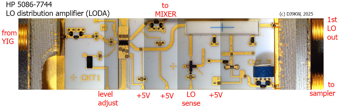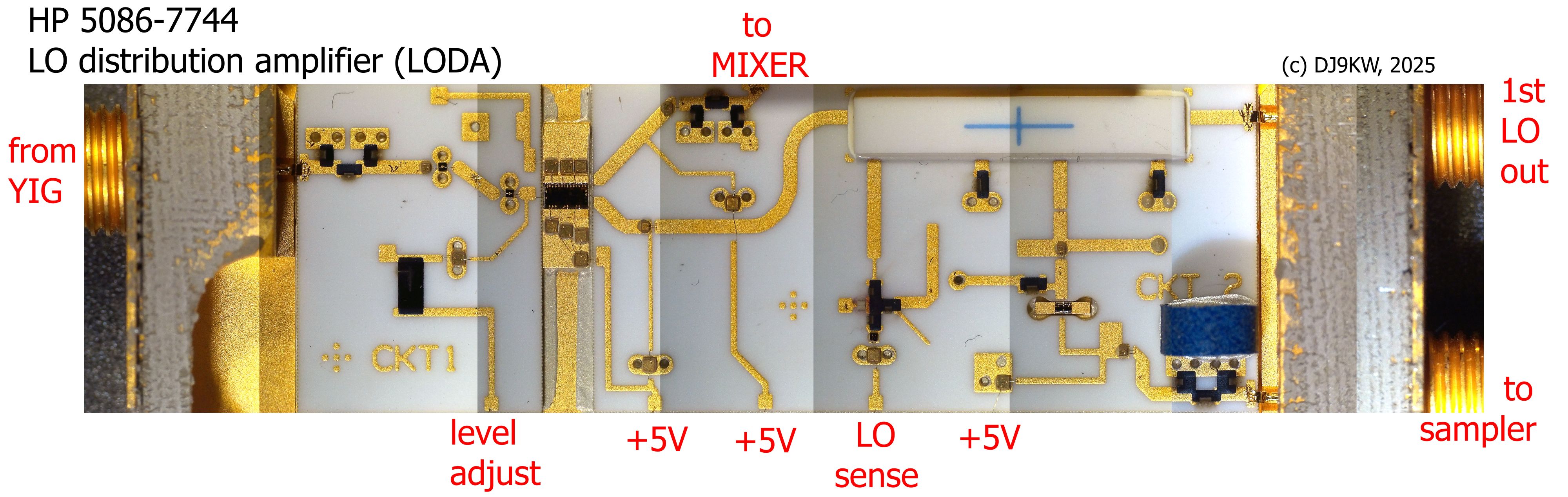 Probably the main amplifier is dead and I don't see any easy way to fix this as a wire bonder isn't the most common tool and not available... So the only thing to do is looking for a donor LODA (and man, they are expensive! Prices for HP stuff are insane!) or going a different route and designing a replacement.