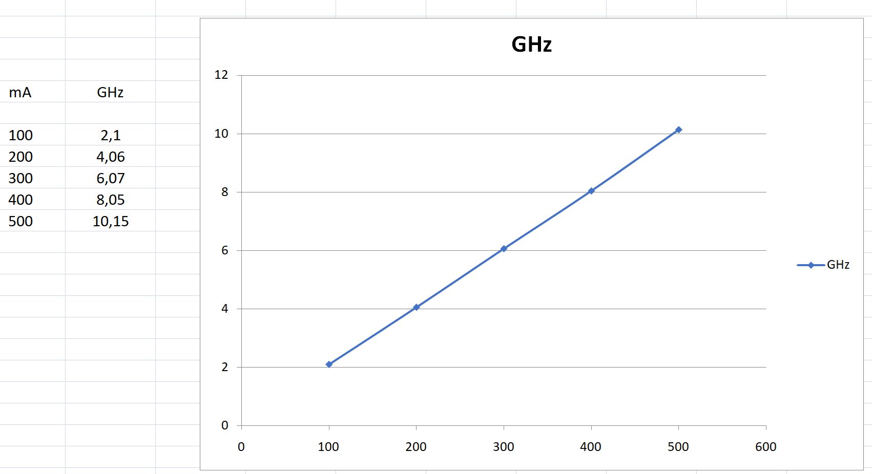 The main tuning coil has a resistance of 10 ohms, this is the current - frequency relation on this oscillator: