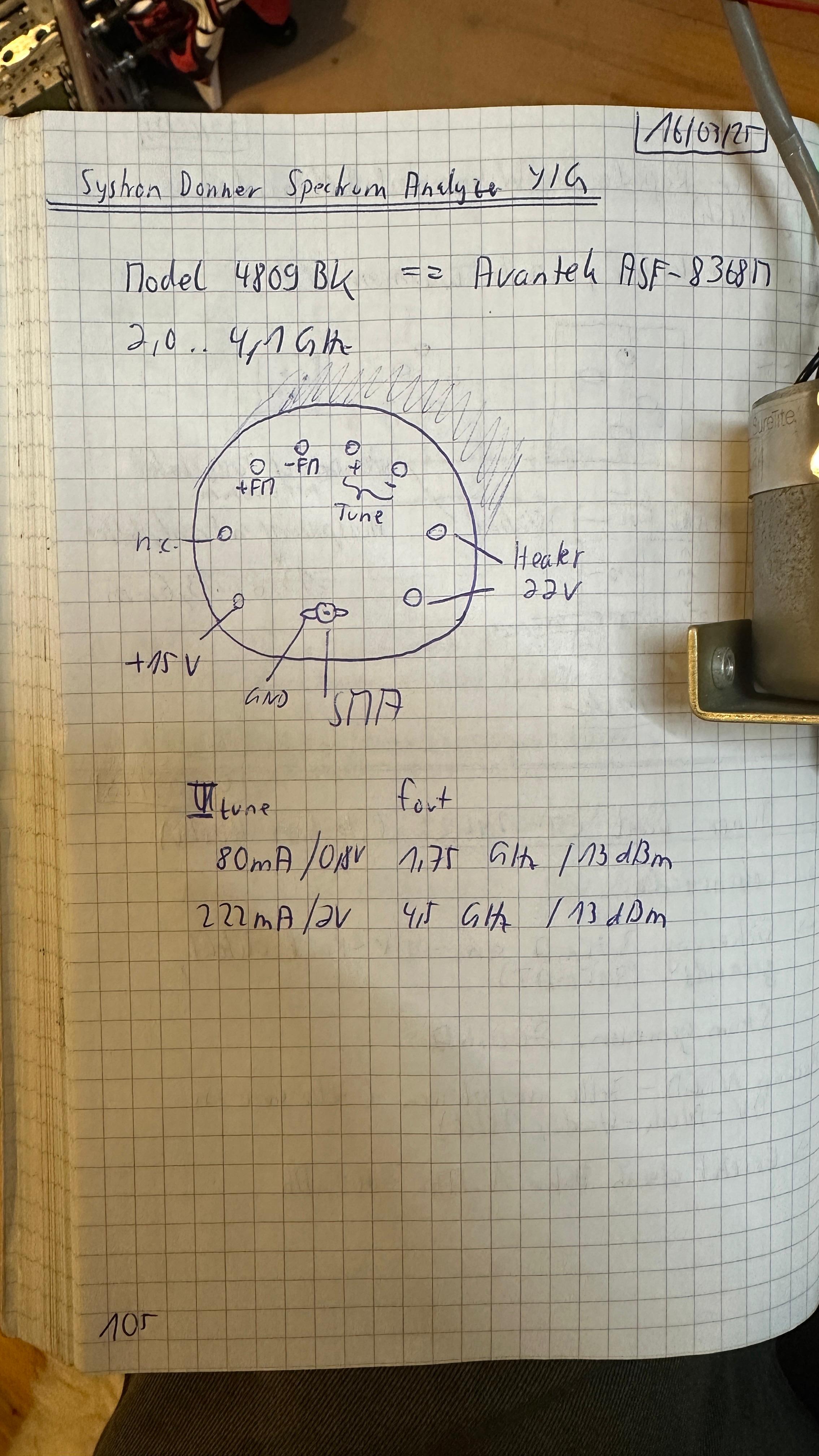 Left from a teardown of an old Systron Donner spectrum analyzer I salvaged this Avantek ASF-8368M Yig Tuned Oscillator, designed to be tunable in the range from 2 to 4.1 GHz. Systron Donner refers to this unit as part number 4809 BK.